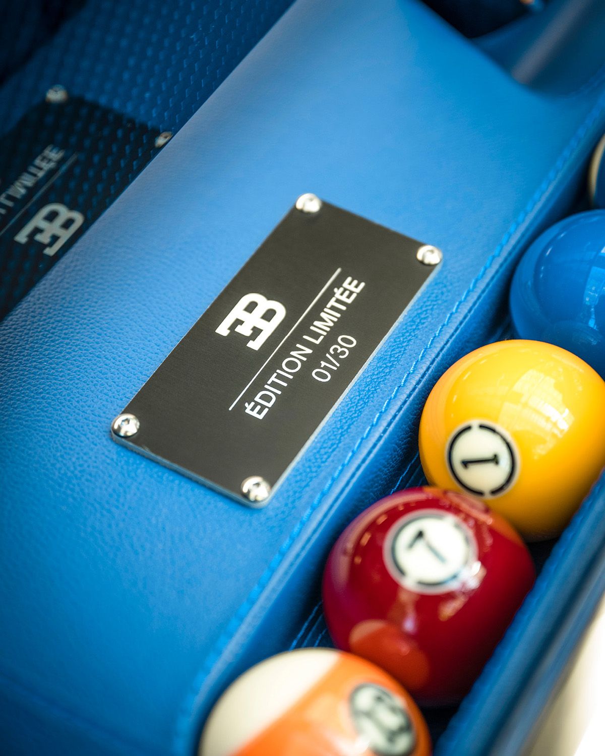 Limitée à seulement 30 pièces hautement exclusives, la table de billard IXO Bugatti incarne la philosophie de Bugatti selon laquelle « La Forme suit la Performance », combinant harmonieusement une esthétique époustouflante et une expertise inégalable. La table est dotée d'une technologie avancée d'auto-nivellement gyroscopique, garantissant une stabilité de jeu même sur un yacht. Offrant une finition parfaite, le cadre en aluminium de la table est recouvert de fibre de carbone de qualité aéronautique, avec des détails inspirés de l'intérieur raffiné de la Bugatti Chiron. Les queues en fibre de carbone et le panneau de commande anodisé reflètent l’extrême attention portée aux détails et la qualité sans faille qui a fait la renommée de Bugatti.