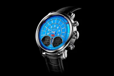 A travers le design de ses automobiles légendaires et intemporelles, Bugatti a toujours su donner un sens au temps. Cette vision a inspiré la création de la « Jean Bugatti », la dernière pièce d’horlogerie née du partenariat entre Jacob & Co. et Bugatti. La « Jean Bugatti » constitue un hommage à la hauteur de l’immense talent de designer de Jean, fils aîné d’Ettore Bugatti. Le cadran en métal bleu vif est doté de touches d’or blanc qui créent une impression de profondeur, de texture et de finition feutrée sous le verre en saphir bombé.